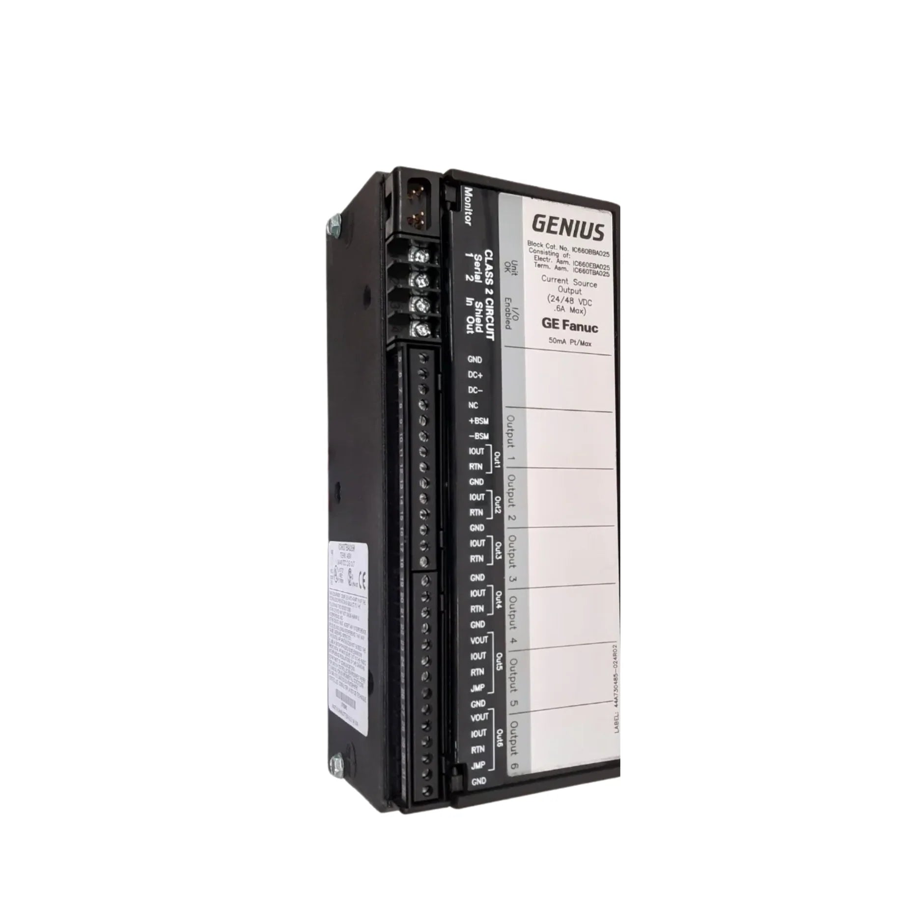 Engineered for consistent control cabinet performance, GE is a 6-channel analog current output block from GE Fanuc (Emerson). This 6-channel analog current output block provides 6 channel for driving loads or interfacing with downstream devices. this component fits applications that demand straightforward commissioning and repeatable results.