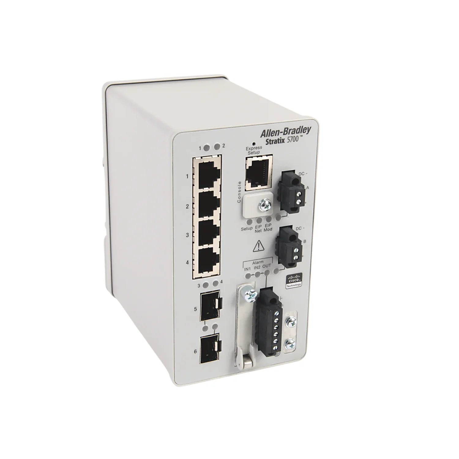 The Allen-Bradley 1783-BMS06SL is a Stratix 2000 unmanaged Ethernet switch featuring six 10/100 Mbps copper ports. Designed for use in industrial Ethernet networks, it offers a simple plug-and-play solution for expanding connectivity in control panels and machine-level applications.