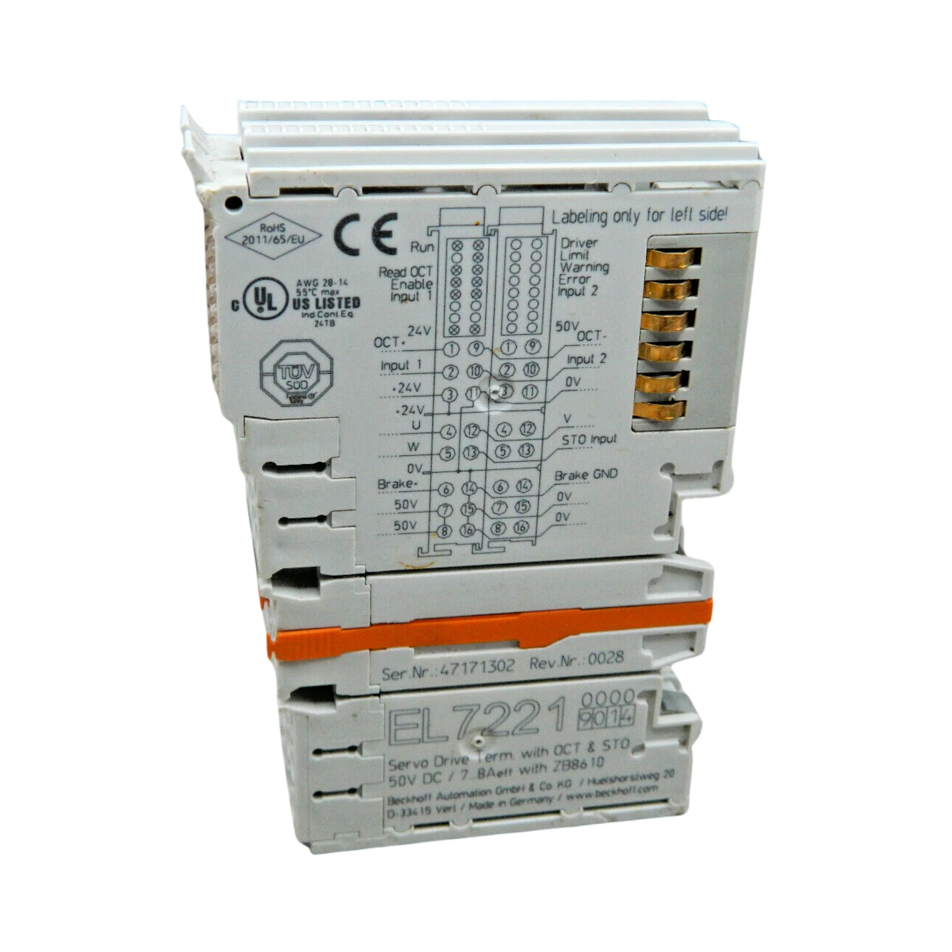 The Beckhoff EL7221-9014 EtherCAT servo terminal with STO safety function is available and ships worldwide.